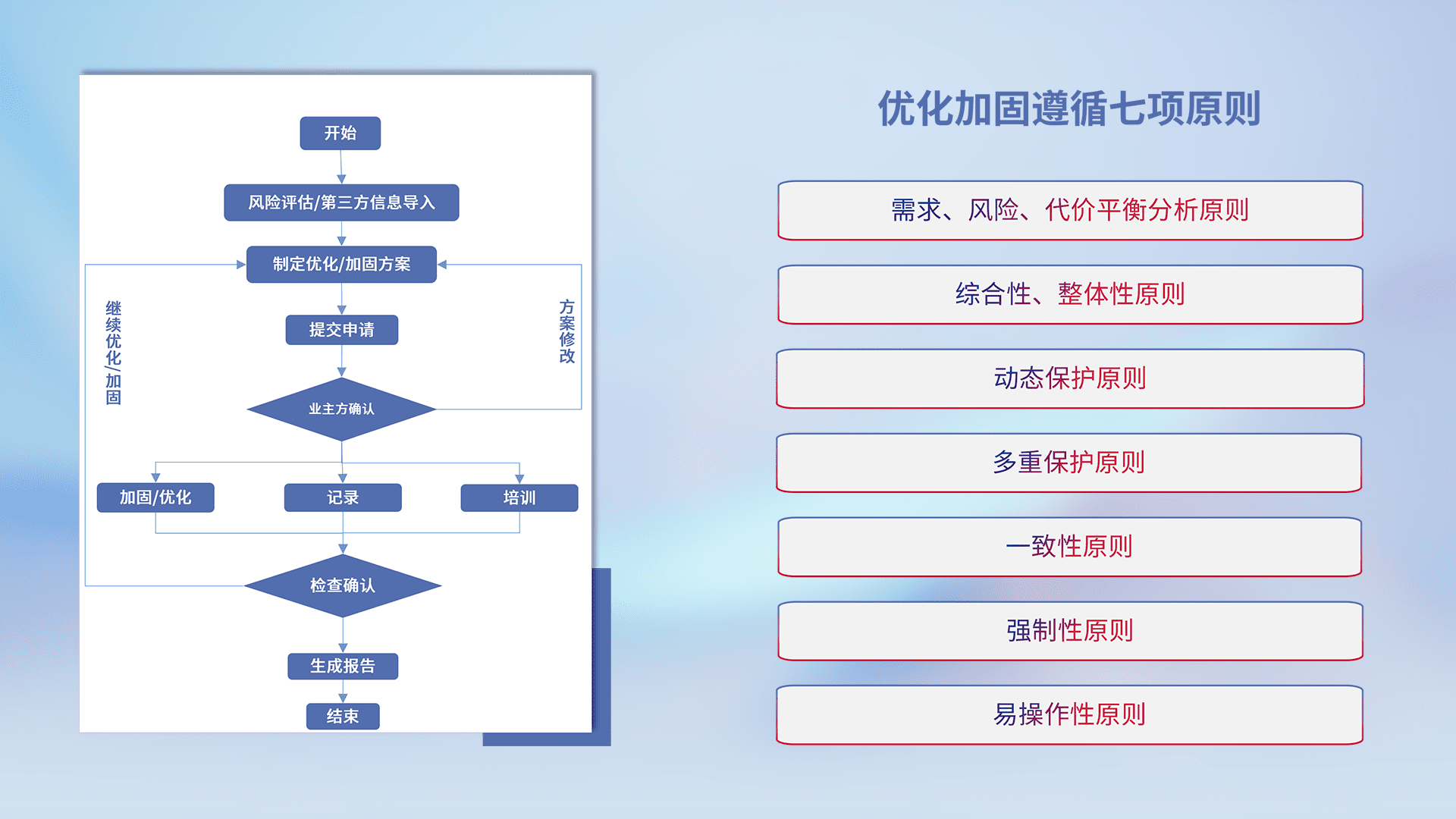通过专业的法律咨询解读、、、合规架构体现、、差异化解决方案、、测试实施支持等服务,,,为客户量身打造等保合规体系。。。